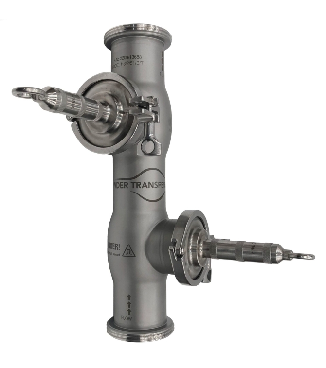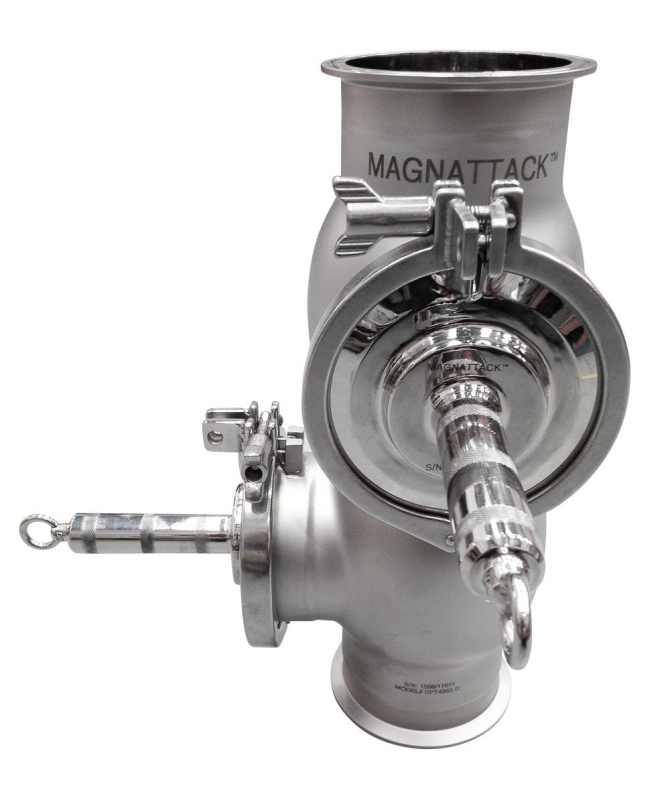 The Magnattack® Powder Transfer Magnetic Separator is a highly sanitary rare earth magnetic separator, with a USDA Dairy Acceptance certification, designed specifically for sensitive powder transfer lines in industries like dairy and pharmaceuticals.